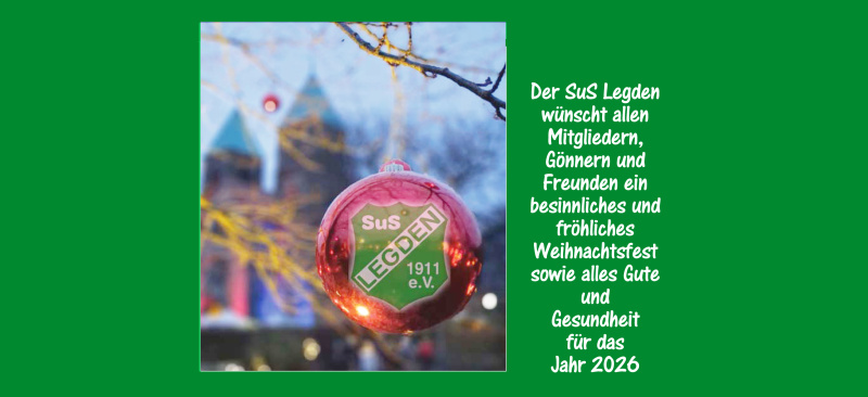 Die Geschäftsstelle des SuS Legden im Dahliendorfstadion (Nordring) bleibt in der Zeit vom 18. 12. 2025 bis zum 12. 01. 2026 geschlossen.