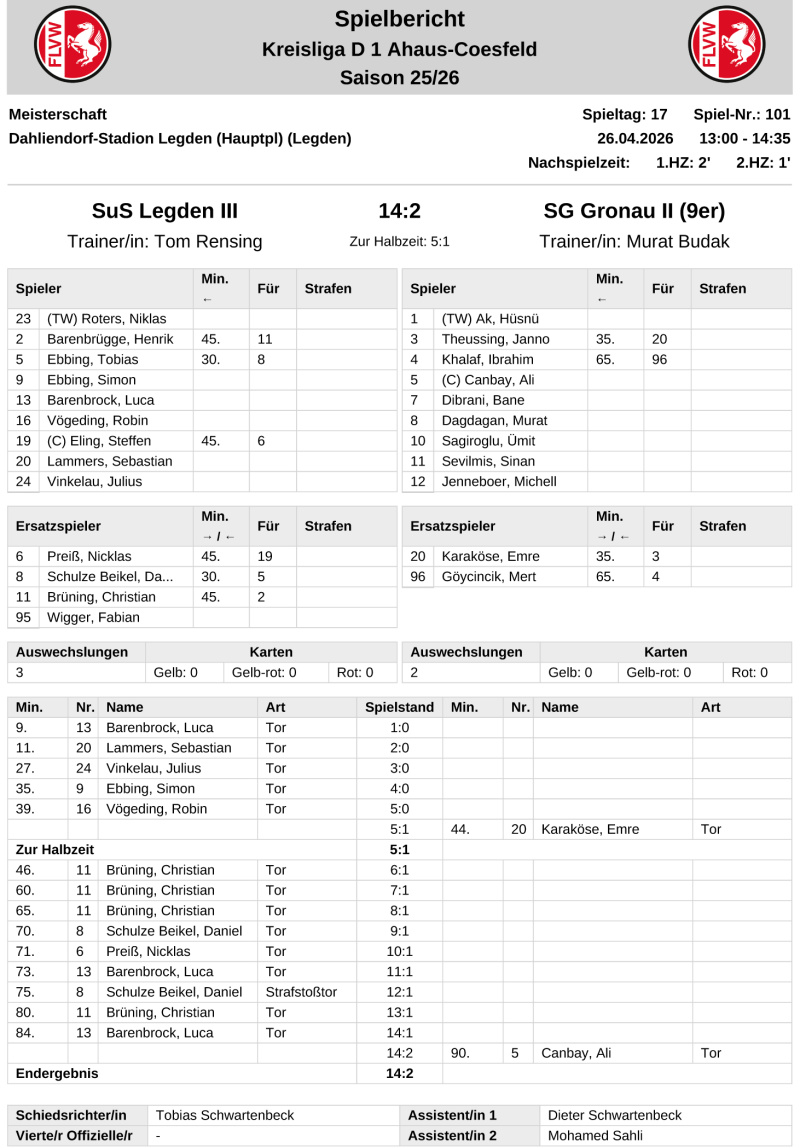 SuS III - SG Gronau II 14:2