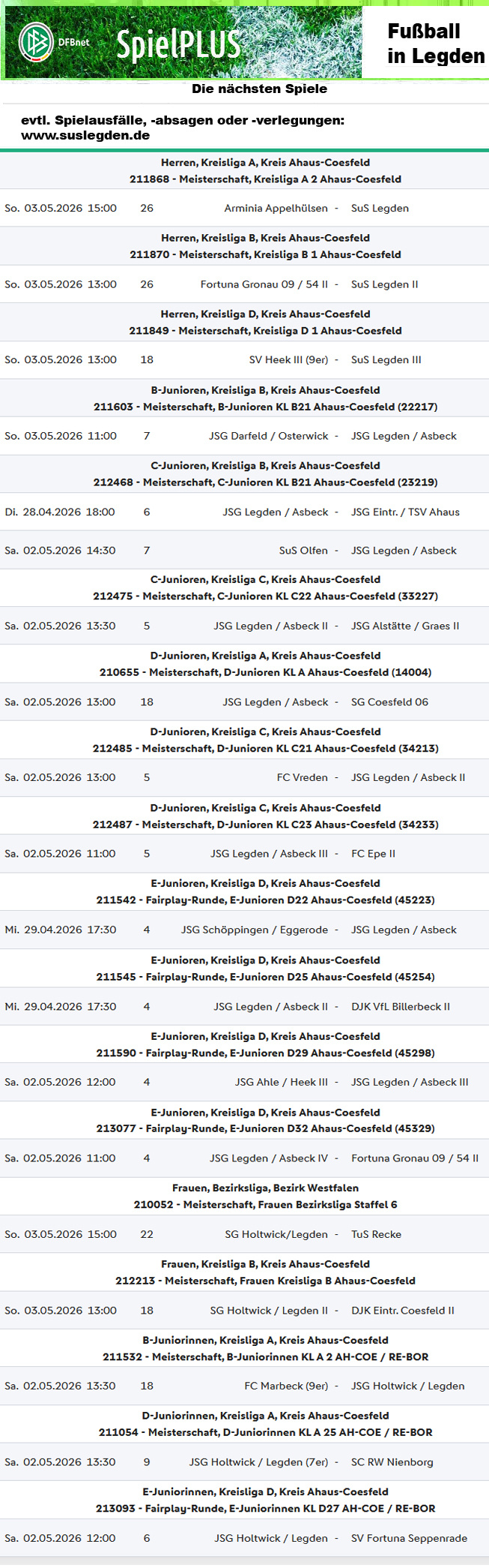 Die Ergebnisse vom Wochenende, die Infos zu den Spielen der SuS-Fußballer*innen, ein Pressebericht und die nächsten Spieltermine