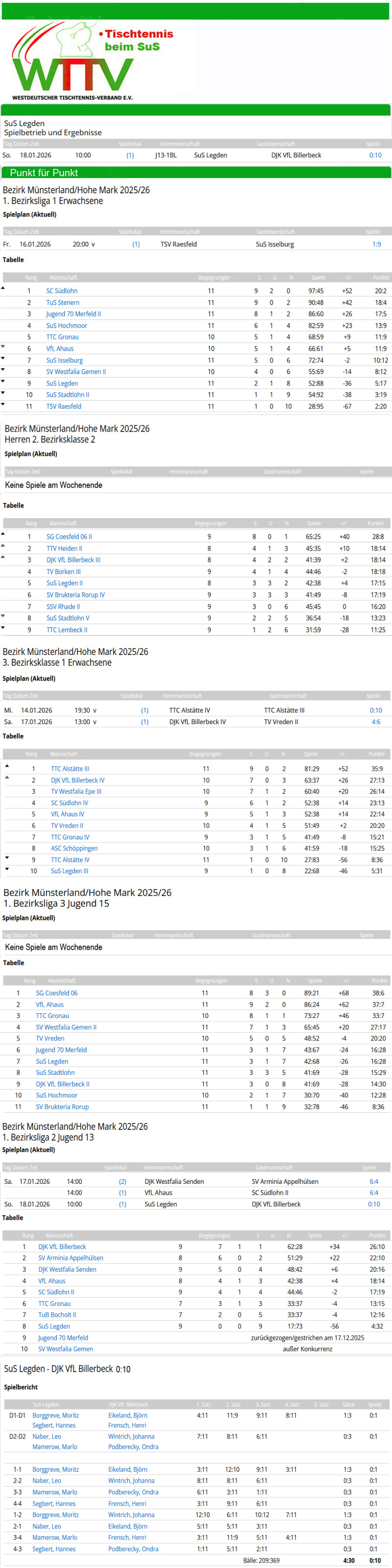 Die Ergebnisse vom Wochenende, die Tabellen und die nächsten Termine