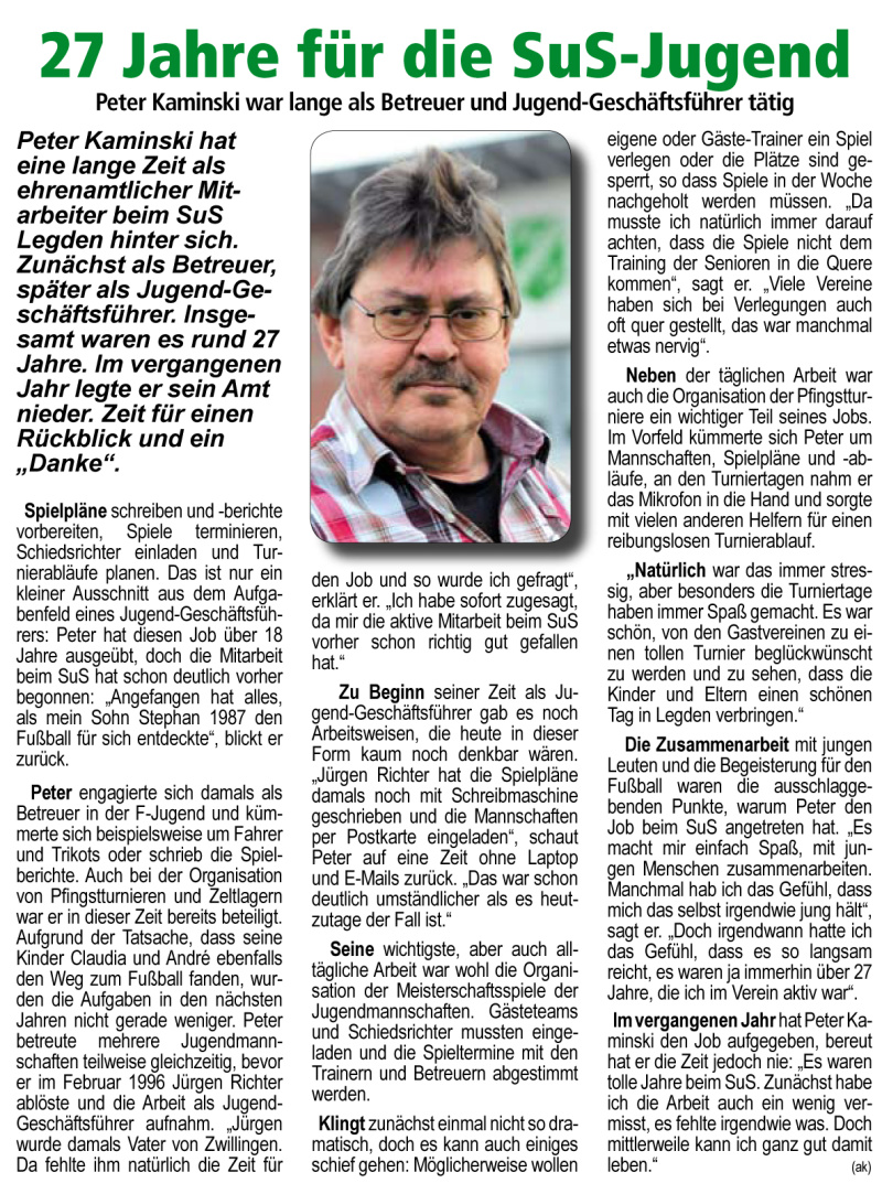 Der SuS Legden wird Peter Kaminski immer in bester Einnerung behalten.