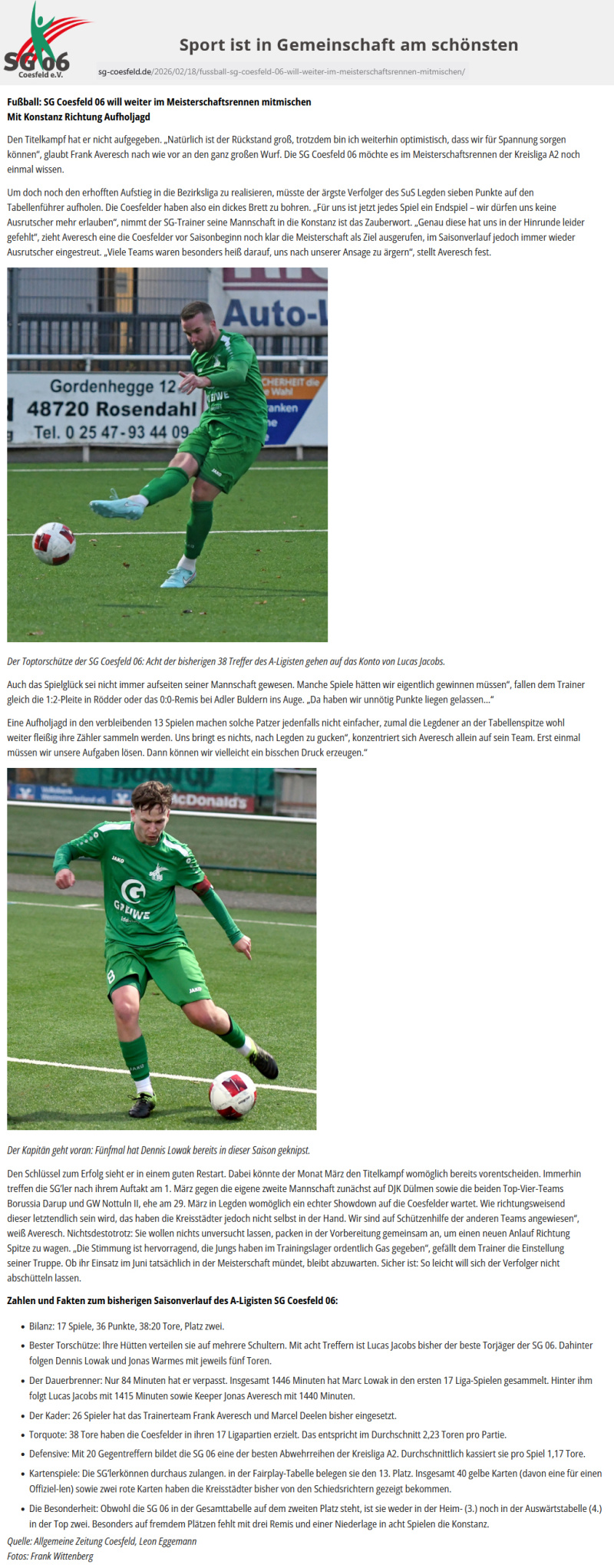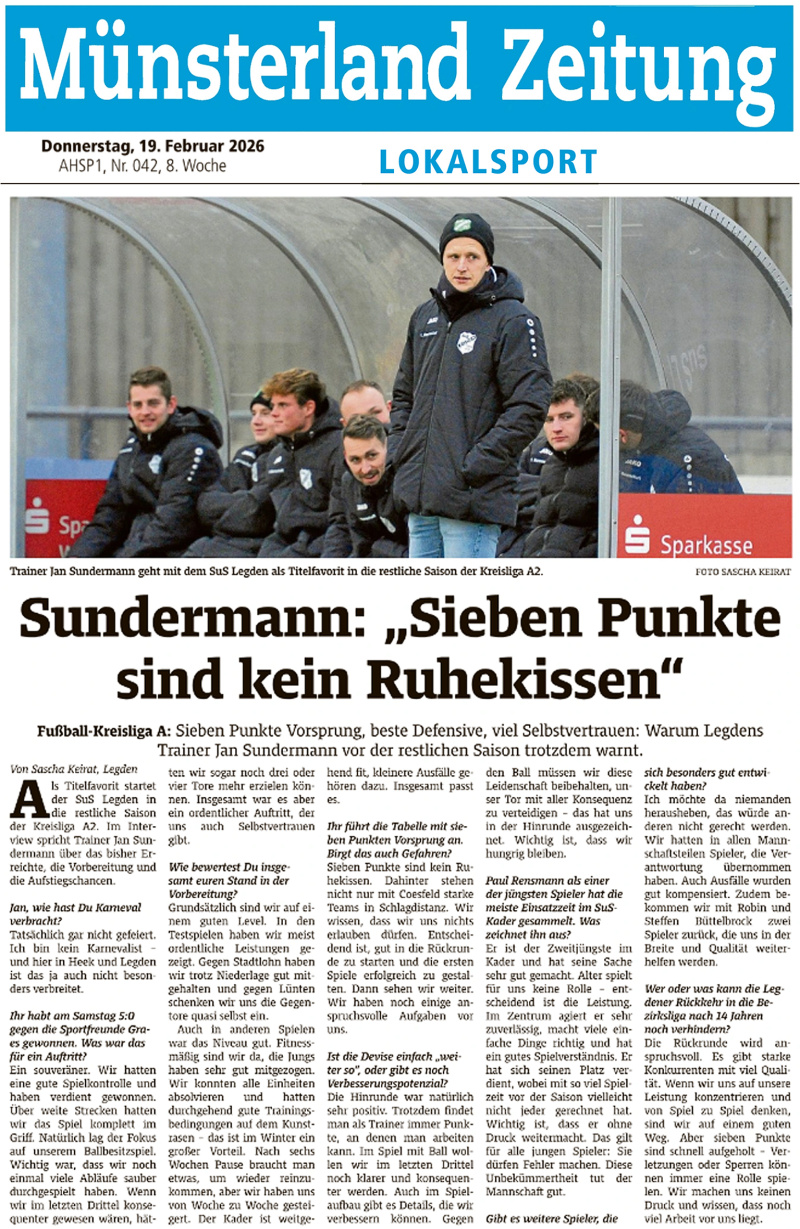 Noch stecken die beiden Top-Teams der Kreisliga A2 in den Vorbereitungen auf den Restart der Meisterschaftsserie 2025/26 - am 1. März geht das Wettrennen um den Titel und Aufstieg zur Bezirksliga wieder los: Jan Sundermann (SuS Legden) und Frank Averesch (SG Coesfeld) nennen ihre Ambitionen.