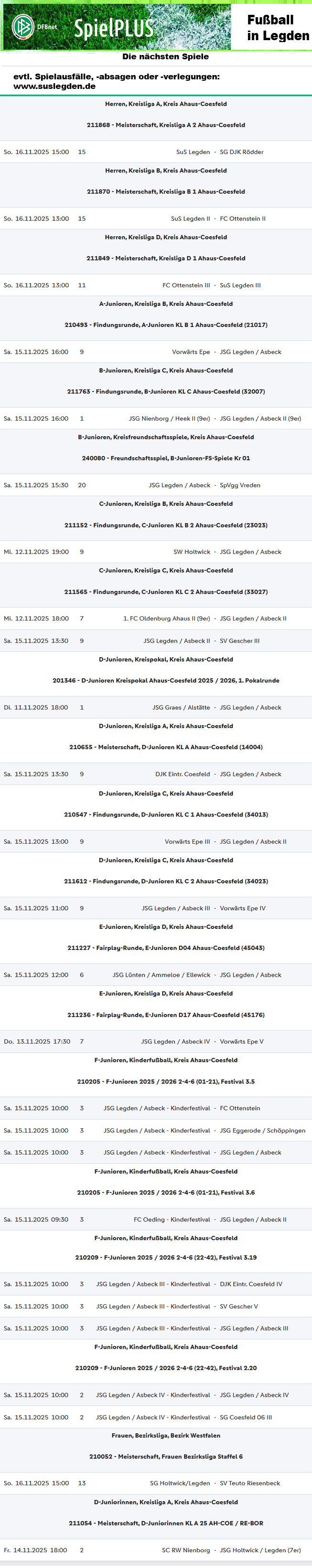 Die Infos zu den Spielen, die Ergebnis-Übersicht und die nächsten Spieltermine