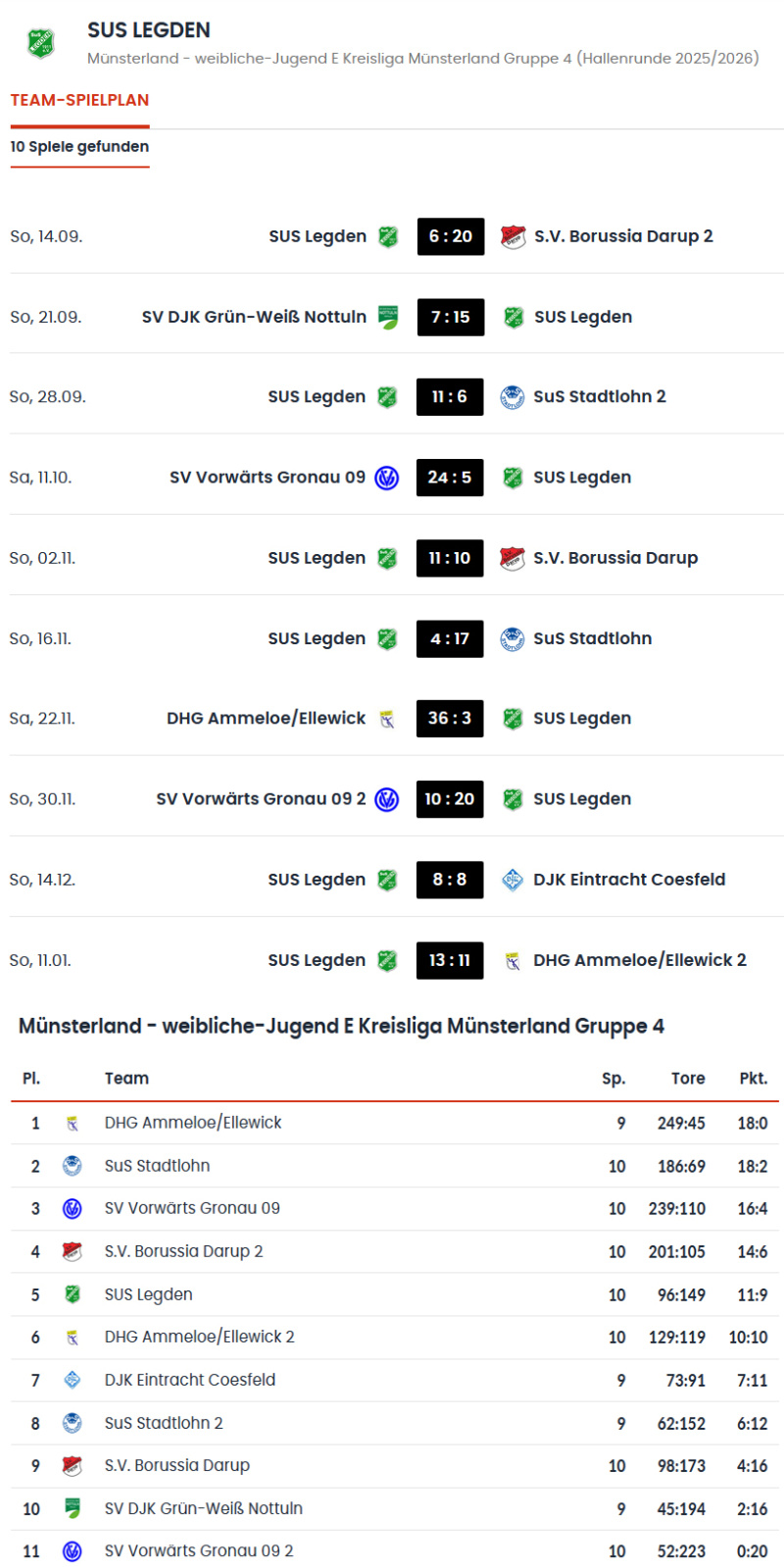 Die Mannschaft bewies in den zehn Spielen in der wJE-Münsterland-Kreisliga Gruppe 4 großen Einsatz und Kampfgeist. In dieser Hinrunde gelangen 5 Siege und ein Unentschieden, was am Ende einen großartigen fünften Platz bedeutete.