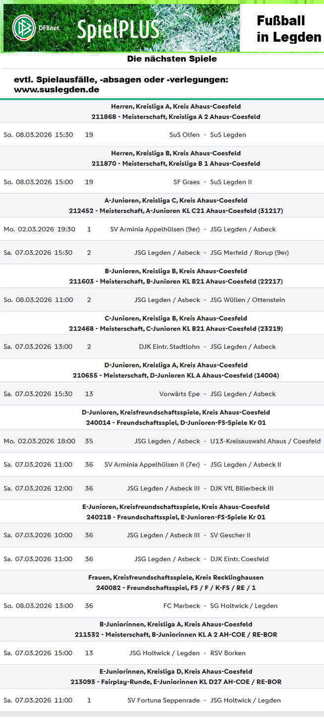 Resulate aus der vergangenen Woche und die nächsten Spieltermine der SuS-Fußballer*innen