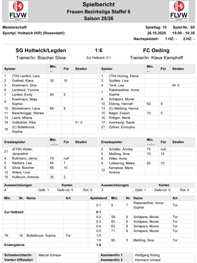 Die Fußballerinnen der SG Holtwick/Legden I haben sich im Kreisderby dem FC Oeding mit 1:6 geschlagen geben müssen.