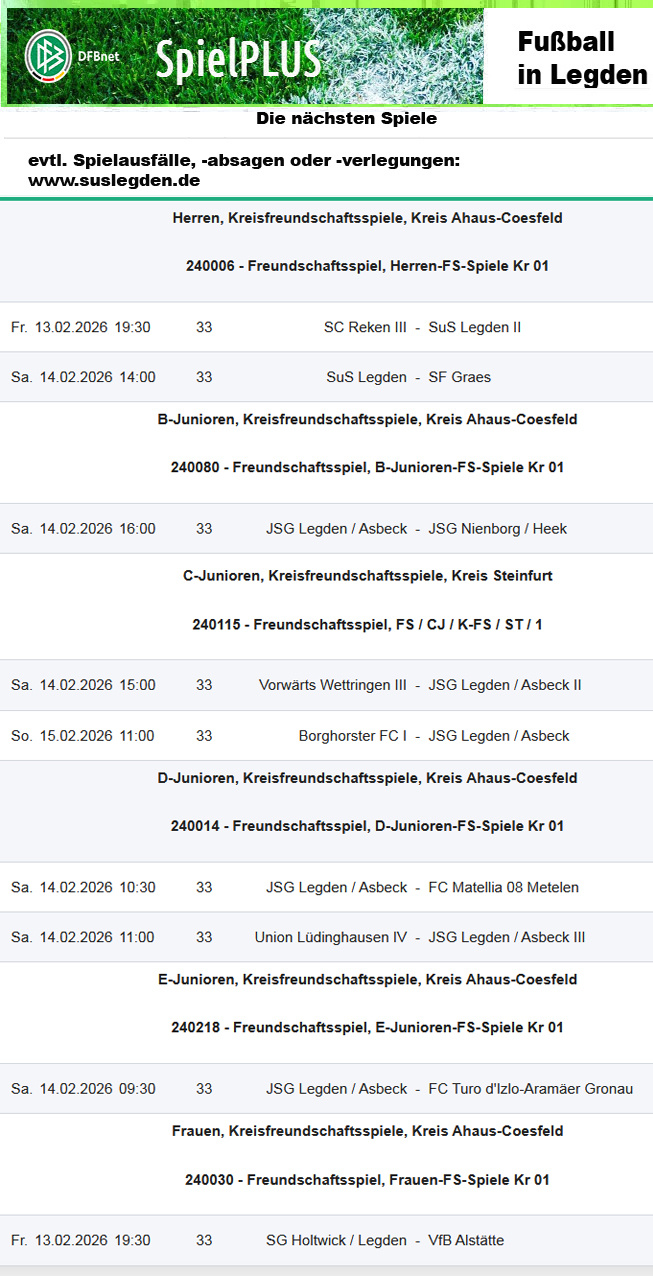 Die Ergebnisse vom Wochenende, die Infos zu den Spielen und die nächsten Spiele in der Übersicht.
