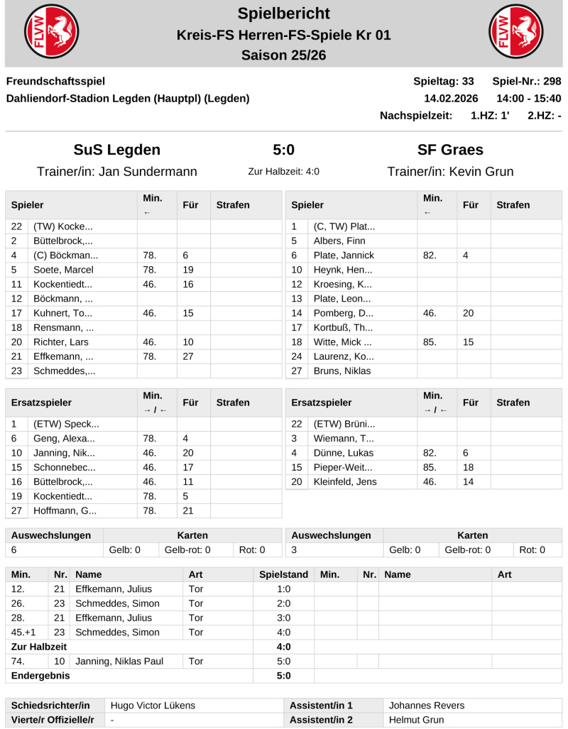 Die Kreisliga-Fußballer des SuS Legden haben sich im Testspiel gegen SF Graes von ihrer besseren Seite gezeigt und einen ungefährdeten 5:0 (4:0)-Sieg eingefahren - SuS II musste sich beim SC Reken III mit 3:5 (1:2) geschlagen geben.