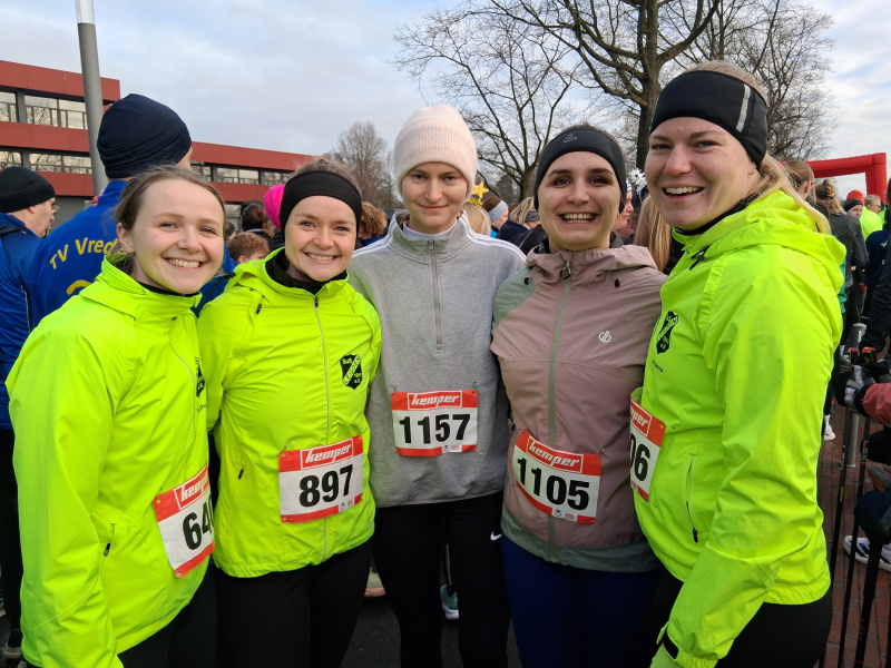 Gemeinsam an der Startlinie - gemeinsam beim Zieleinlauf: Sophia Vinkelau, Theresa Vinkelau, Franziska Lösing, Jana Hüls und Johanna Weiss (v. l.).