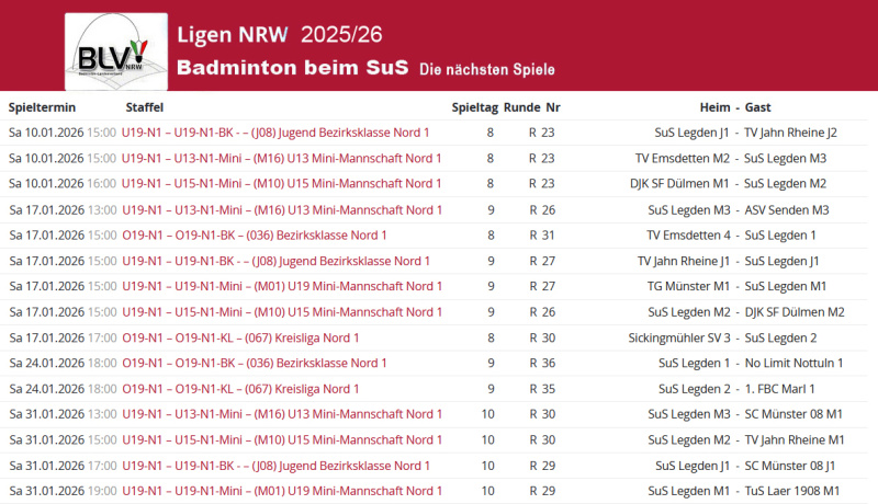 Die Hallensportler*innen des SuS Legden beenden ihre Winterpause: In den nächsten Tagen nehmen sie ihren Meisterschaftsbetrieb wieder auf.