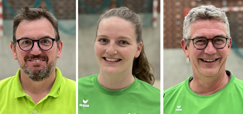 Abteilungsleiter Alfons Leuker, Spiel- und Schiedssrichterwartin Pia Weuler sowie Passwart Matthias Beckhaus (v. l.) wurden bei den Vorstandswahlen in ihren Ämtern bestätigt; Lara März und Mia Noll vervollständigen de Vorstand als Medienwarte, der ehemalige Medienbeauftragte Timo Berning wechselt in das Amt des Beisitzers.