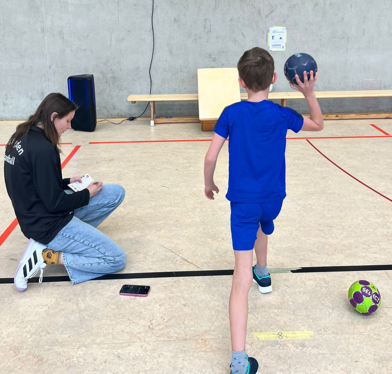 An jeweils fünf Stationen konnten die Kinder ihr Geschick im Werfen, Fangen und Prellen ausprobieren. Für ihre Ergebnisse bekamen Sie Punkte. Nachdem alle Kinder die Aufgaben geschafft hatten, konnte sie in einem Handballspiel ihr Können anwenden. Hierzu hatte die Helfer zwei Handballfelder in der Sporthalle aufgebaut.