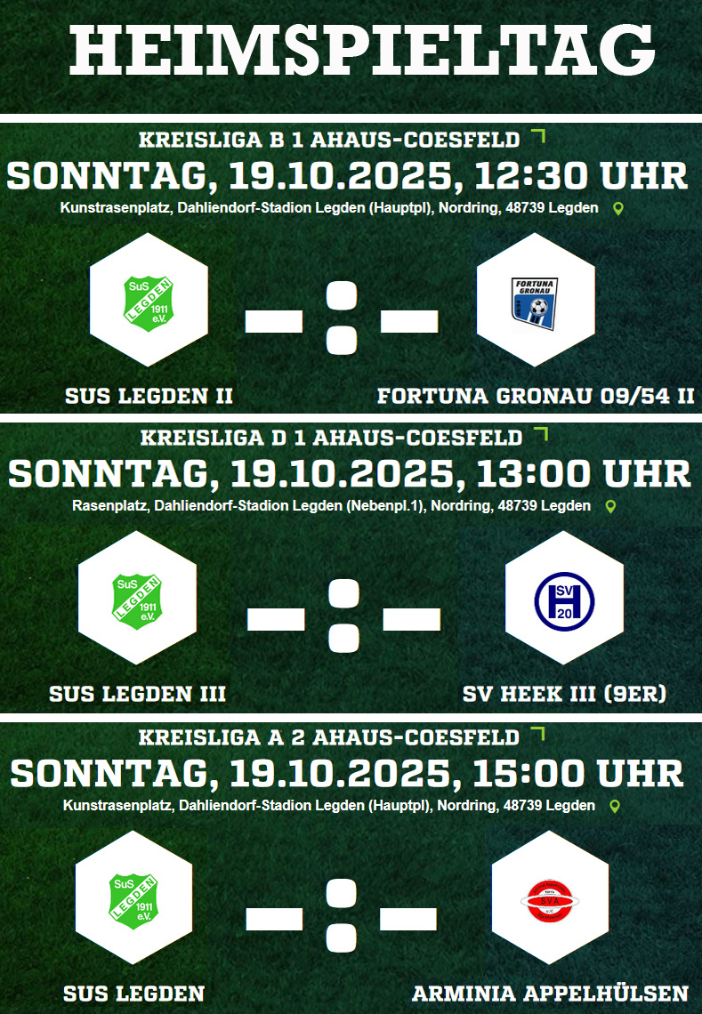 Beim Heimspieltg am Sonntag stellen sich alle drei Seniorenmannschaft des SuS Legden in Legden vor.