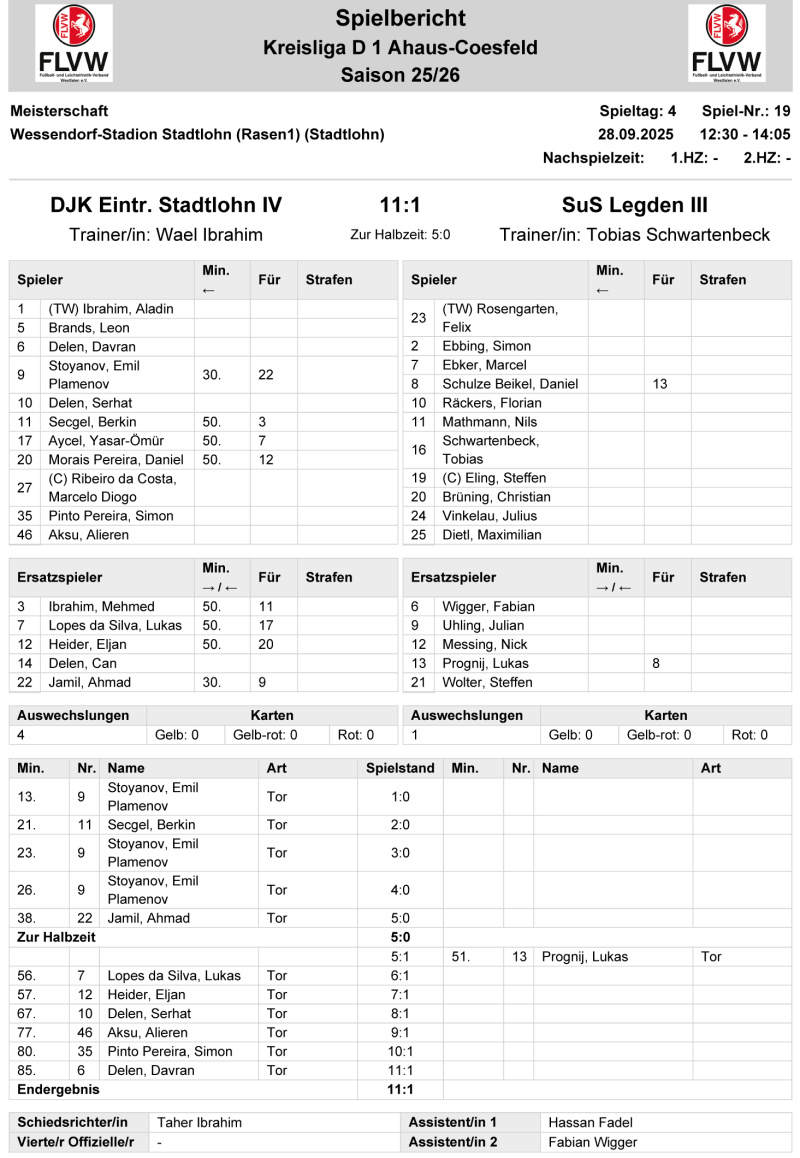 Viertes Meisterschaftsspiel in der Kreisliga D1 - vierte Niederlage: Und dieses Mal erwischte es den SuS III "knüppeldick", denn bei DJK Stadtlohn IV setzte es eine 1:11-Niederlage. Am Sonntag geht es für das Tabellen-Schlusslicht (0 Punkte, 4:23 Tore) gegen TG Almsick II.