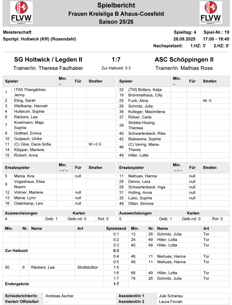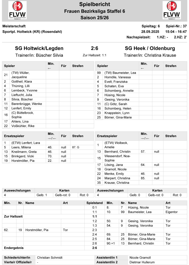 Mit zwei Niederlagen haben die Fußballerinnen der SG Holtwick/Legden das Wochenende beendet.