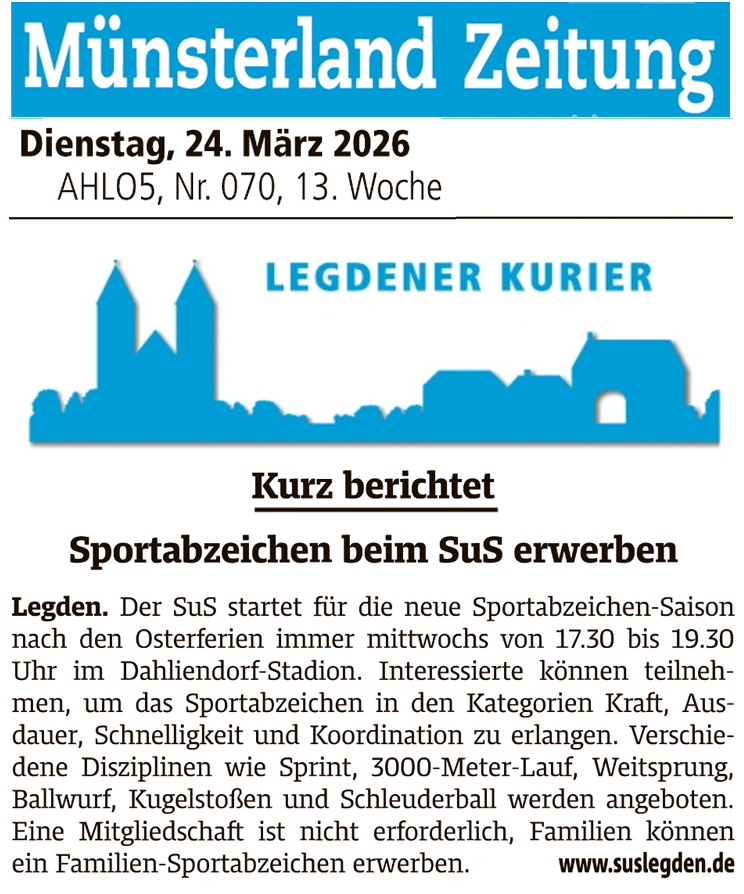 Um den Sportabzeichen-Betrieb (Training, Abnahme) weiterhin relativ reibungslos anbieten zu können, sucht die Leichtathletikabteilung einige Helfer.