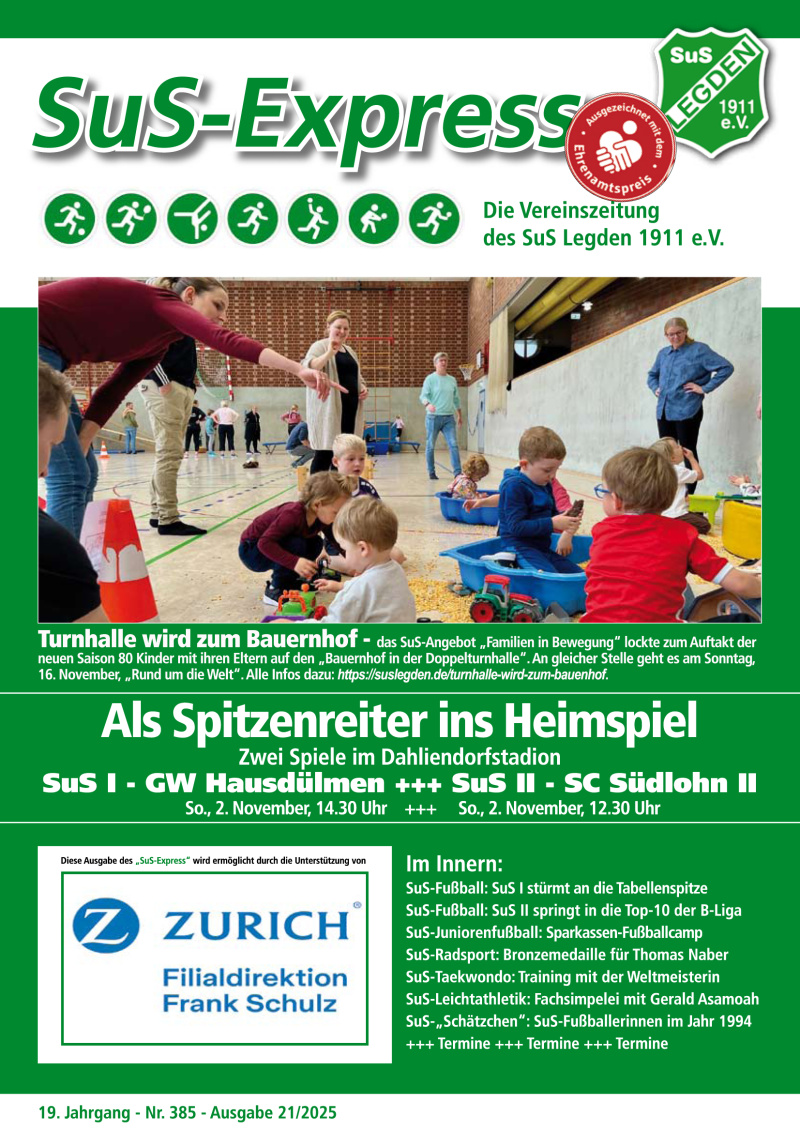 | 15.00 | Doppelturnhalle | Kleinkinderturnen (Jg. 2020/21) | M. Uppenkamp & Team |