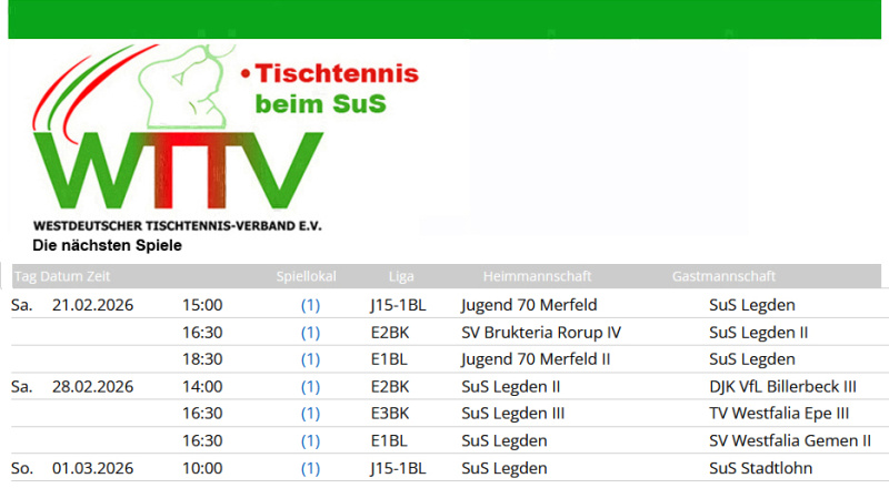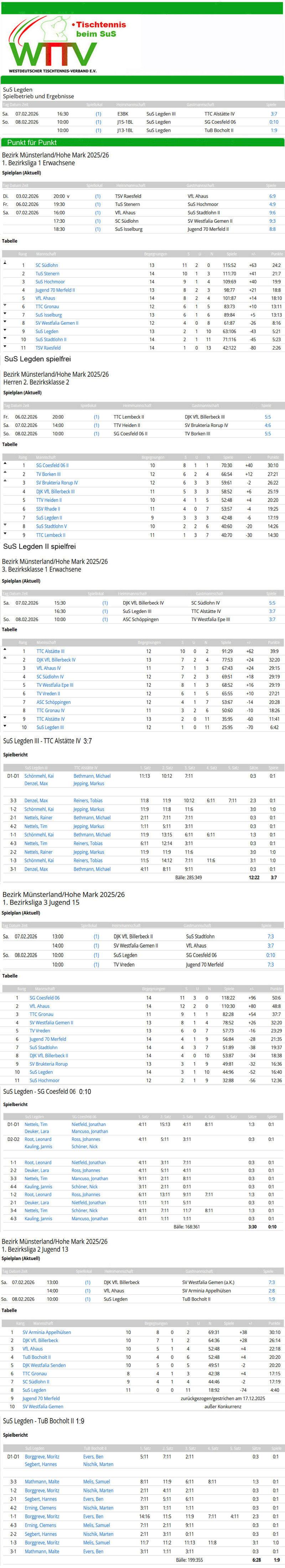 Die Ergbenisse vom Wochenende, die Infos zu den Spielen der SuS-Teams, Tabellen und die nächsten Termine in der Übersicht.