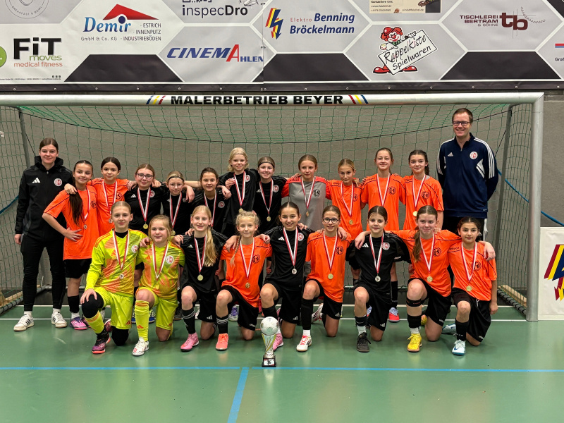 Die U13-Juniorinnen der Kreisauswahlmannschaft (orangene Trikots) und die U12-Juniorinnen aus dem Fußballkreis Ahaus/Coesfeld waren beim Hallenturnier in Ahlen erfolgreich am Ball.