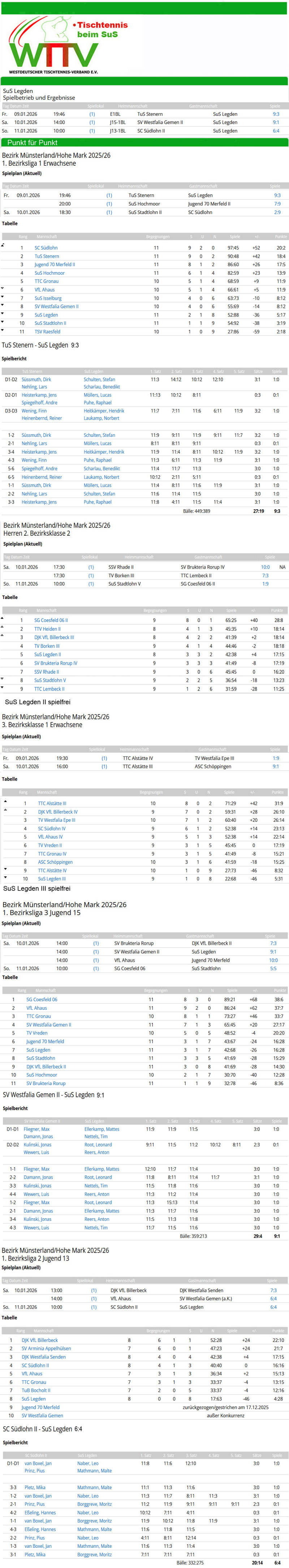 Die Spiele der SuS-Teams, die Ergebnisse vom Wochenende und die Tabellen sowie die nächsten Spiele in der Übersicht.