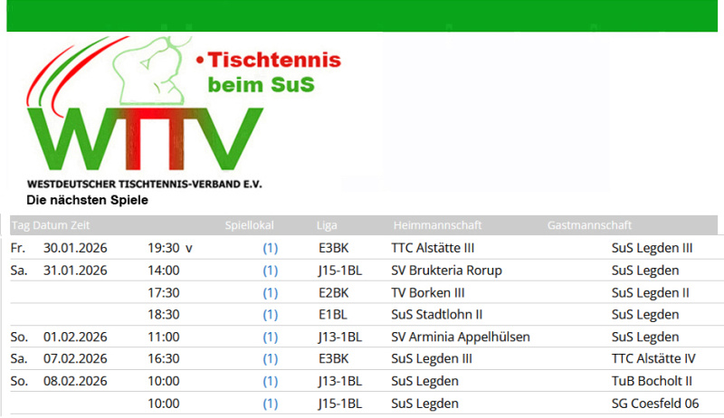 Die Ergebnisse vom Wochenende, die Infos zu den Spielen der SuS-Teams, die Tabellen und die nächsten Aufgaben auf einen Blick.