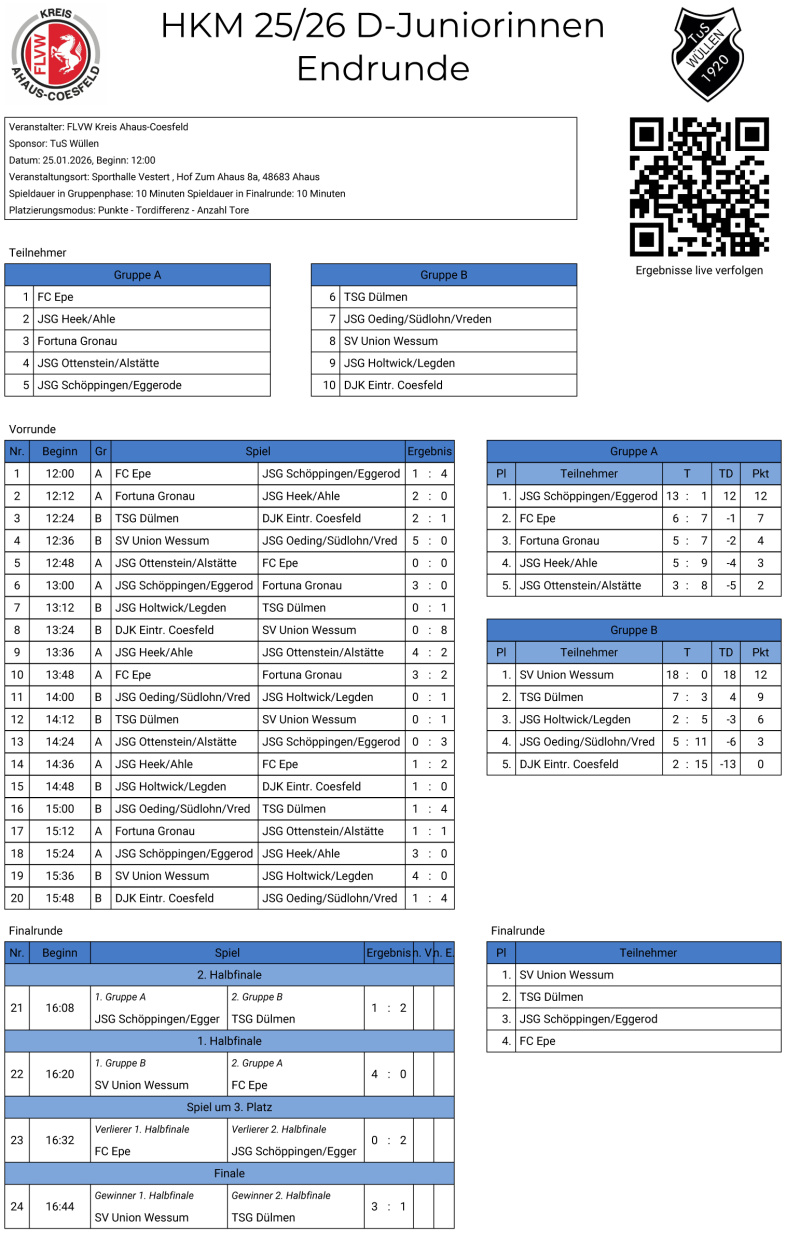 Die D-Juniorinnen der JSG Holtwick/Legden waren bei der Hallen-Kreismeisterschaft am Ball