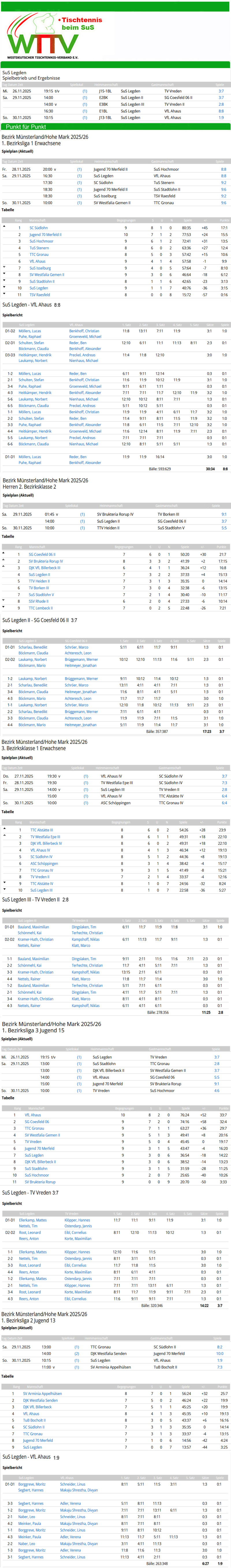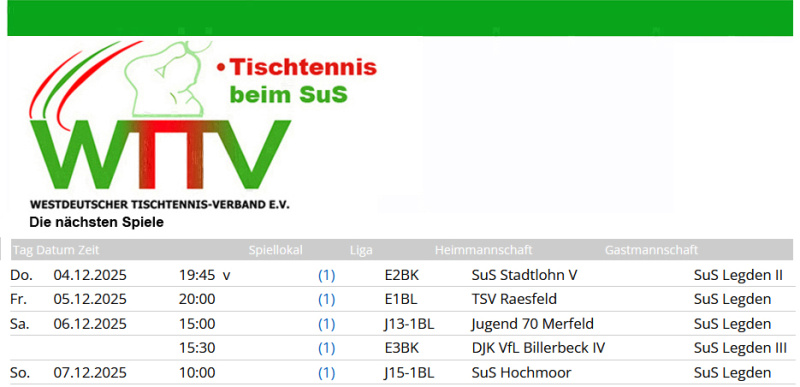 Die Ergebnisse vom Wochenende, die Infos zu den SuS-Spielen, die Tabellen und die nächsten Spieltermine in der Übersicht