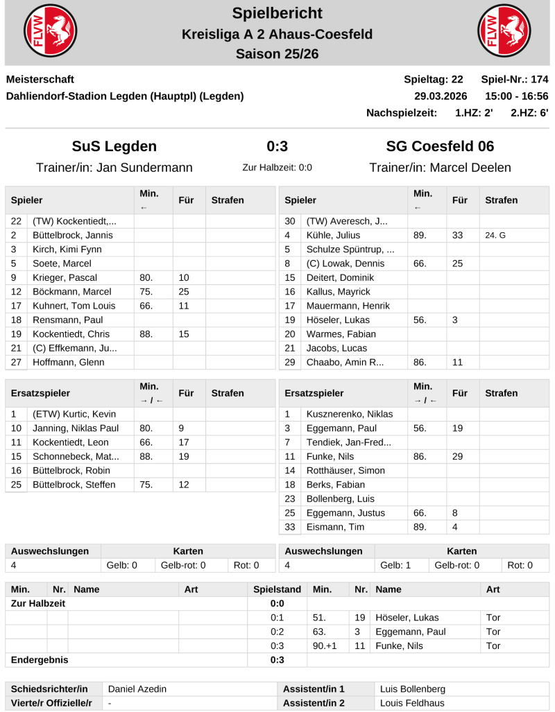 SuS I - SG Coesfeld 0:3