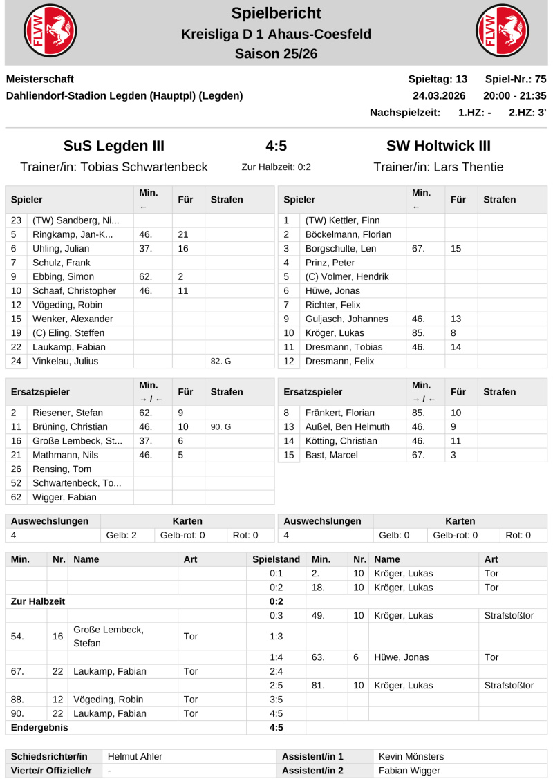 Fußball-D-Ligist SuS Legden III kassierte in der vergangenen Woche zwei Mal einen "Fünfer-Pack": 4:5 gegen SW Holtwick III und 3:5 beim FC Oldenburg II.