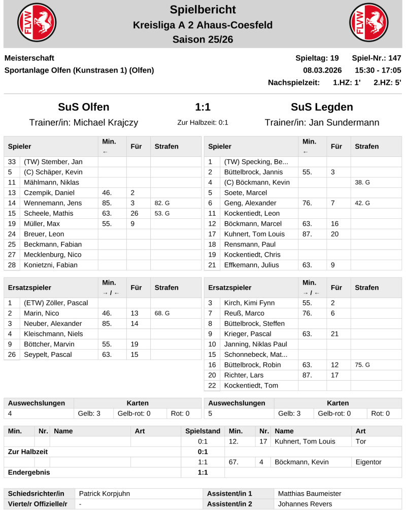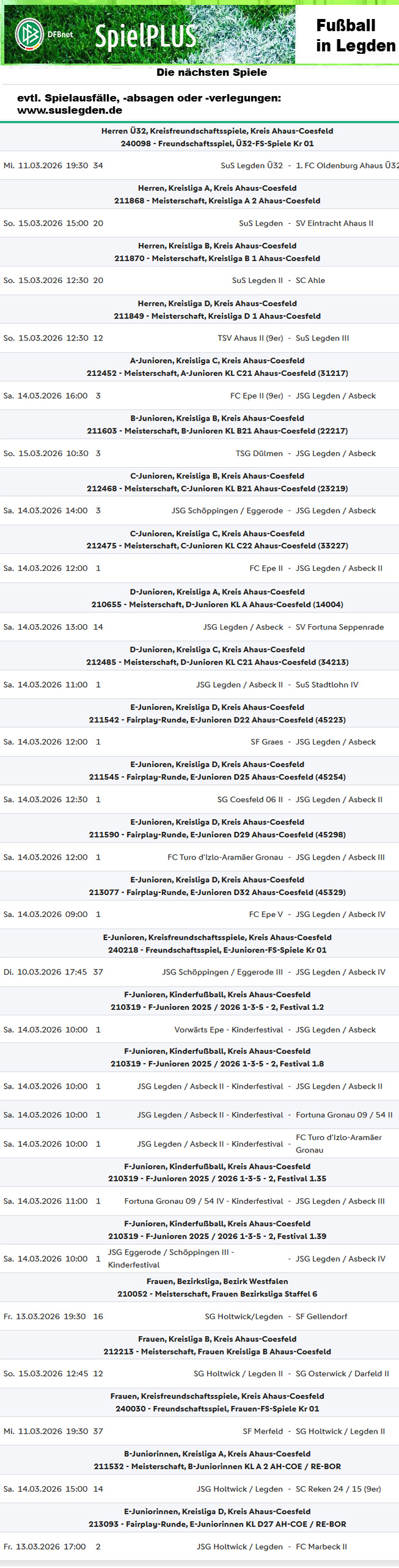 Die Infos zu den Spielen, die Presseberichte zum Spiel des SuS I in Olfen, die Ergebnisübersicht und die nächsten Spieltermine