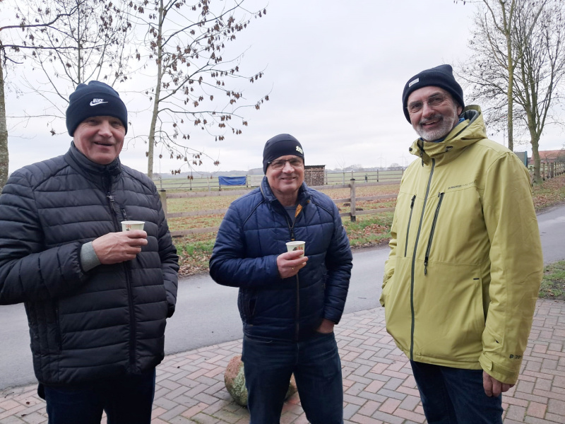 25 Lauf- und Walkings-Sportler*innen traten am letzten Tag des Jahres 2025 am Kiebitzmarkt an, um eine letzte Runde zu drehen. Dabei wurde in der rund 24-jährigen Geschichte dieses Taditionslaufs wohl erstmals eine Rast eingelagt an der Schützhütte im Haulingort, wo ein Gläschen Glühwein neue Lebens- und Laufgeister weckte. Eine Stärkung mit Kaffee und Kuchen gab es im Landhotel Hermannshöhe. Nach gut acht Kilometern mit einem Abstecher in der Dahlien-Weihnachtsgarten verabschiedeten sich die Teilnehmer*innen auf ein Wiedersehen in 2026.
