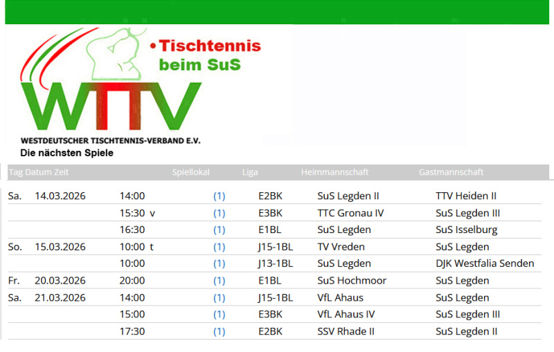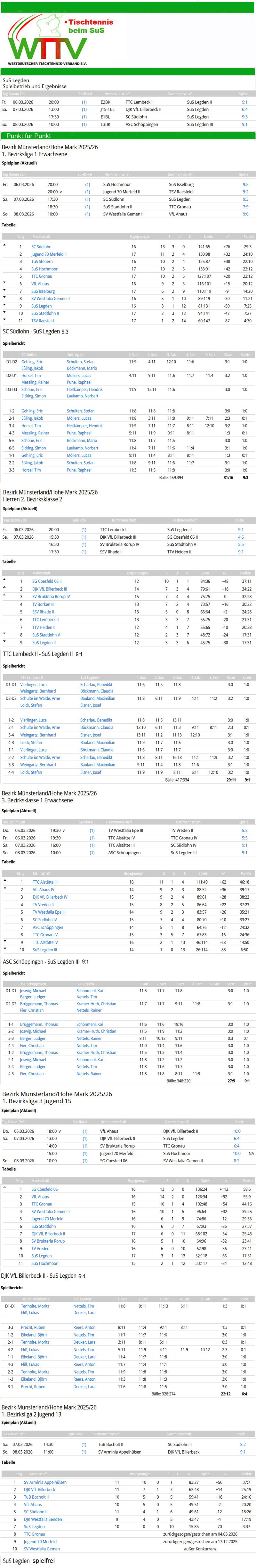 Die Ergebnisse vom Wochenende, die Infos zu den Spielen des SuS, die Tabellen und die nächsten Spiele