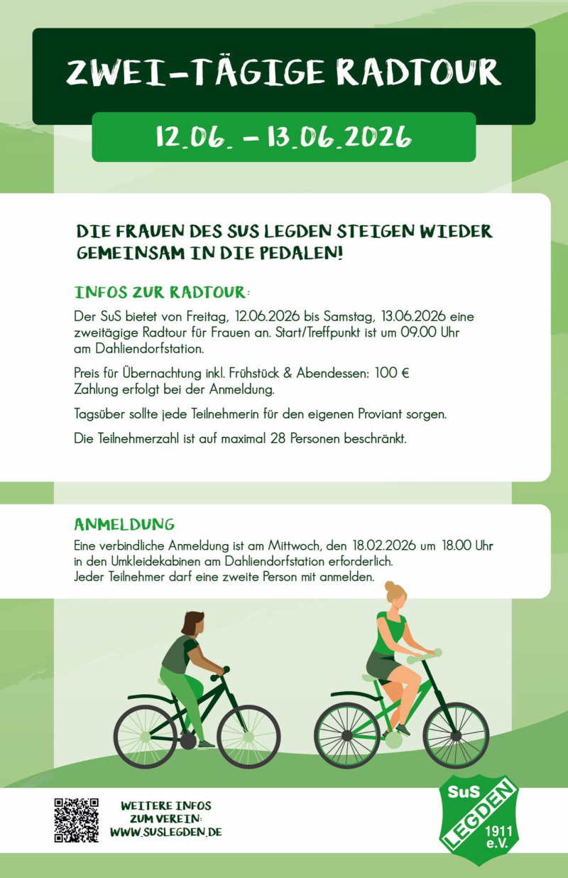 Die Frauen der SuS-Turn- und Breitensportabteilung treten wieder in die Pedalen: Am 12. und 13. Juni geht es auf eine zweiitägige Radtour - Anmeldungen dazu am 18. Februar.
