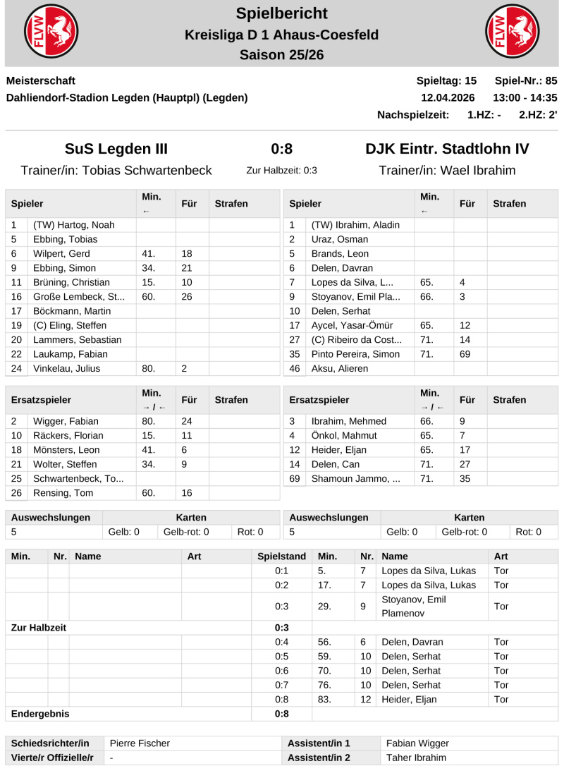 Mit 0:8 fiel die Niederlage des D-Ligisten SuS-Legden gegen den Liga-Primus DJK Stadtlohn IV mehr als deutlich aus.