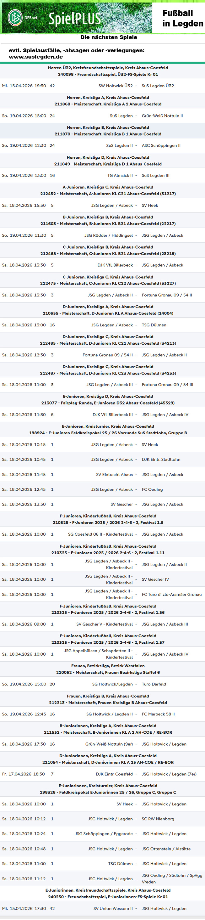 SuS Legden gibt die Spitze frei
