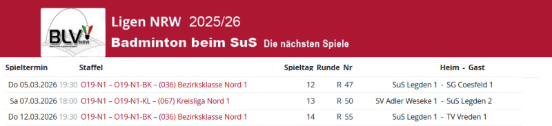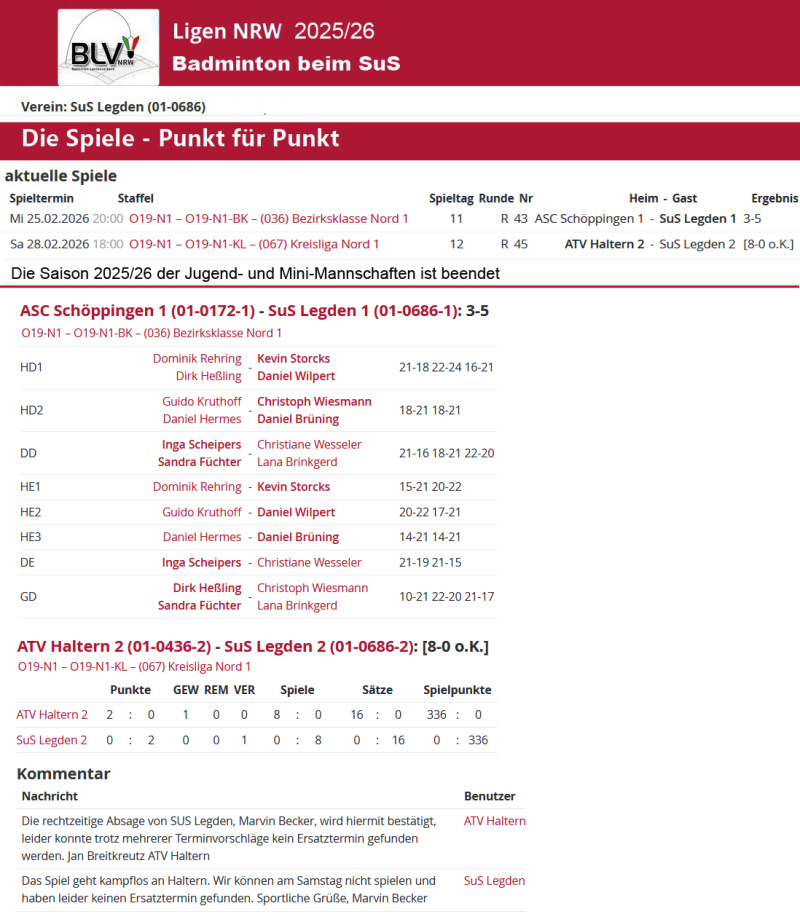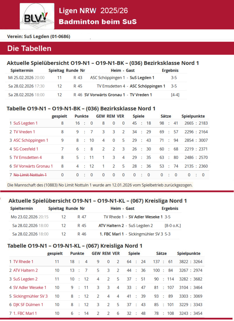 Die Ergebnisse vom Wochenende, die Infos zu den Spielen des SuS, Tabellen und Termine in der Übersicht