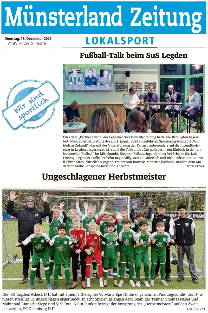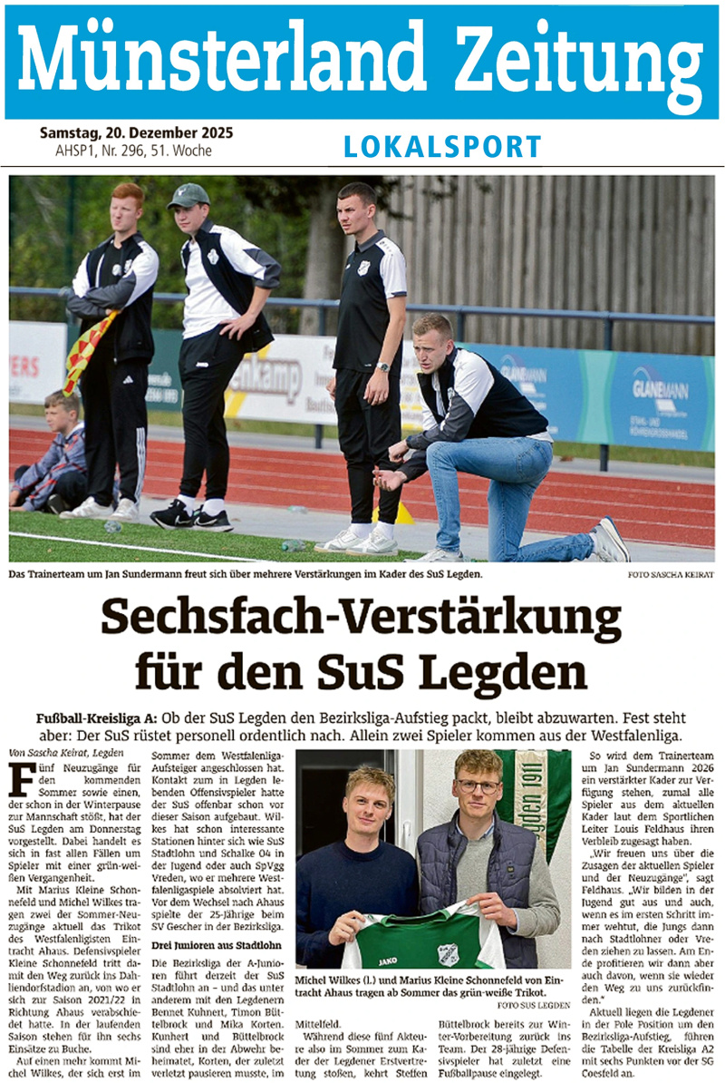SuS-Sportler und -Abteilungen bestimmen die Schlagzeilen in der Münsterland Zeitung - eine kleine Presseschau