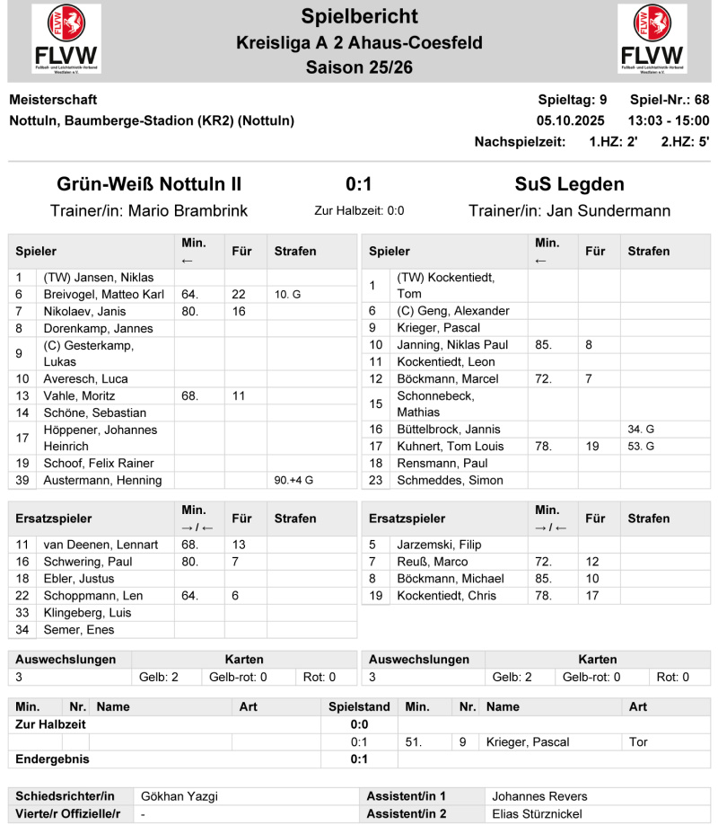 Die Infos zu Spiel in Nottuln und der Pressebericht