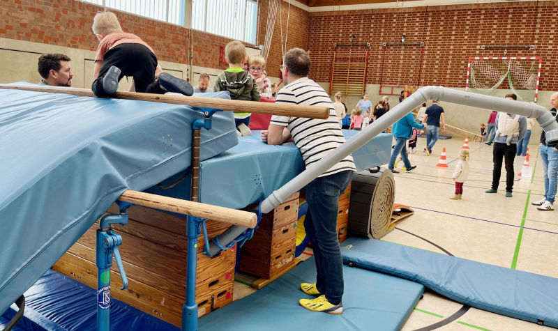 Zum Auftakt in die neue Saison fanden sich am vergangenen Sonntagmorgen rund 80 Kinder gemeinsam mit ihren Eltern in der Doppelturnhalle der Brigidenschule ein. Sie folgten dem Angebot des Teams „Familien in Bewegung“ der Turn- und Breitensportabteilung des SuS Legden, das auch in diesem Jahr über die Wintermonate vielseitige thematische Bewegungslandschaften anbietet.