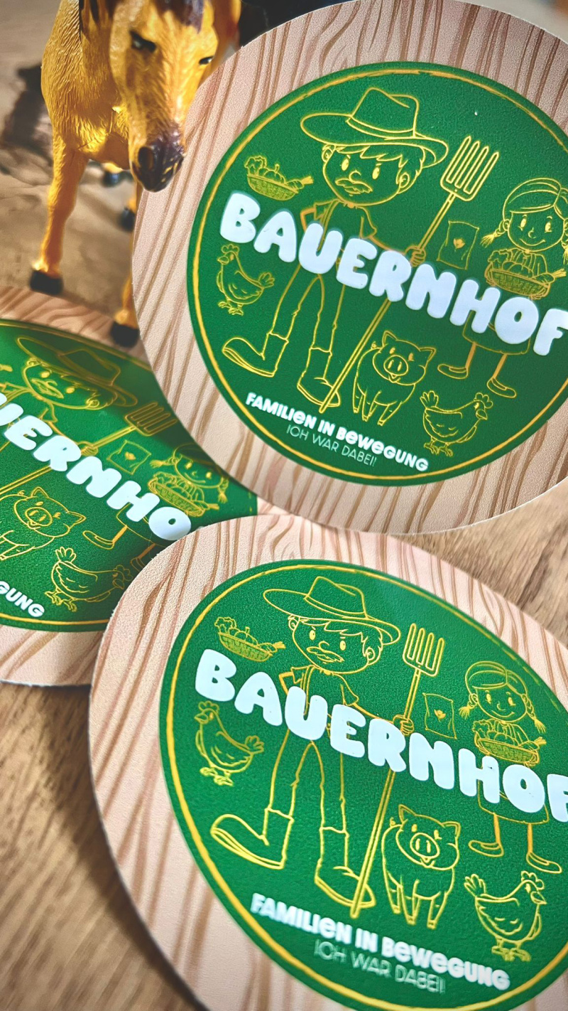 Wer mochte, konnte sich auch mit Schweinen im "Dreck suhlen" oder nach getaner Arbeit ein wenig Ruhe und Entspannung in der Hängematte finden. Zum Abschluss erhielten alle Kinder ein kleines Andenken in Form eines Bauernhof-Stickers, der nun das eigene Zuhause verschönert.